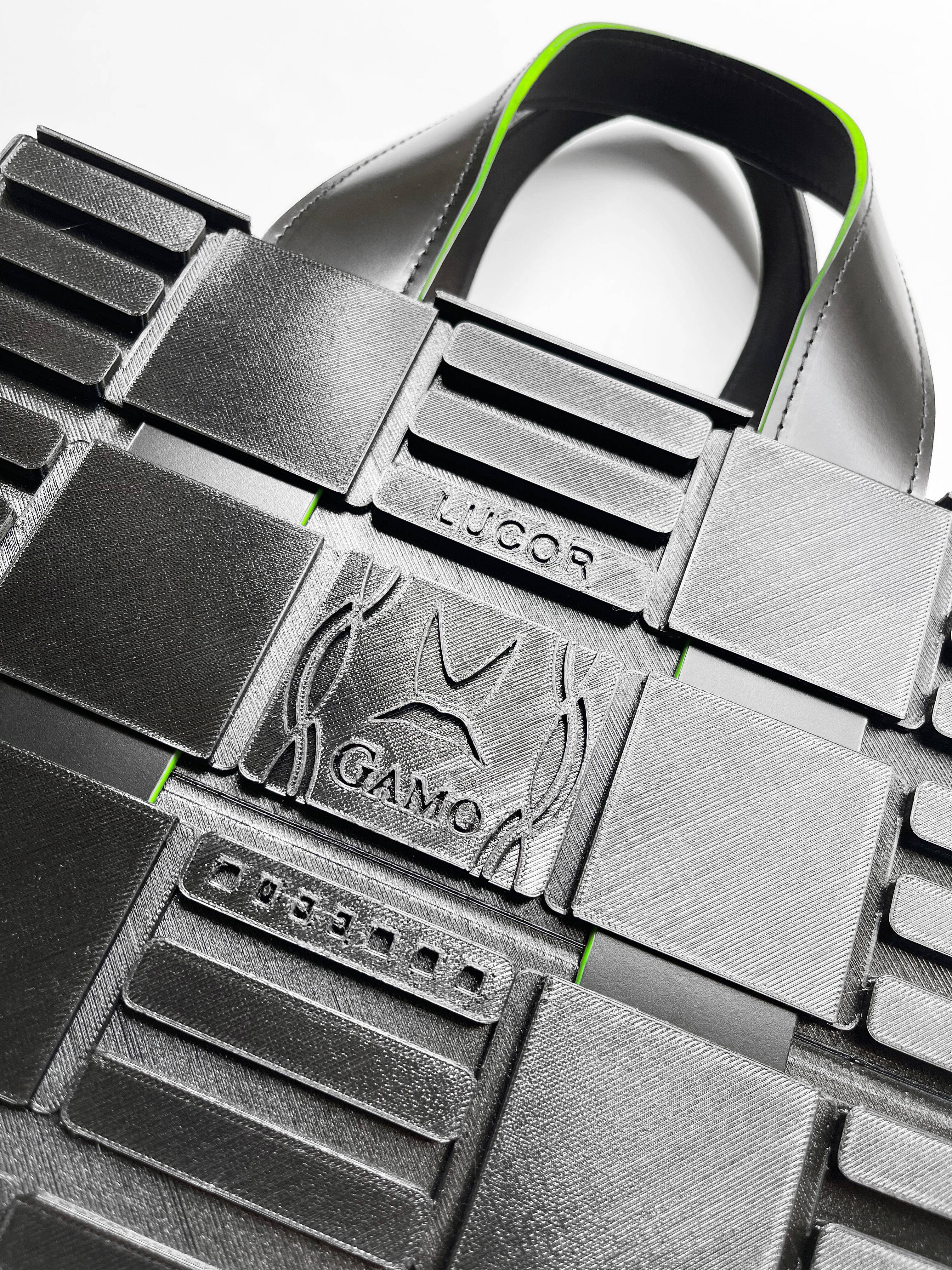 それを3Dプリンターで出力し、高周波ウェルダー加工で圧着した贅沢なシリーズです。