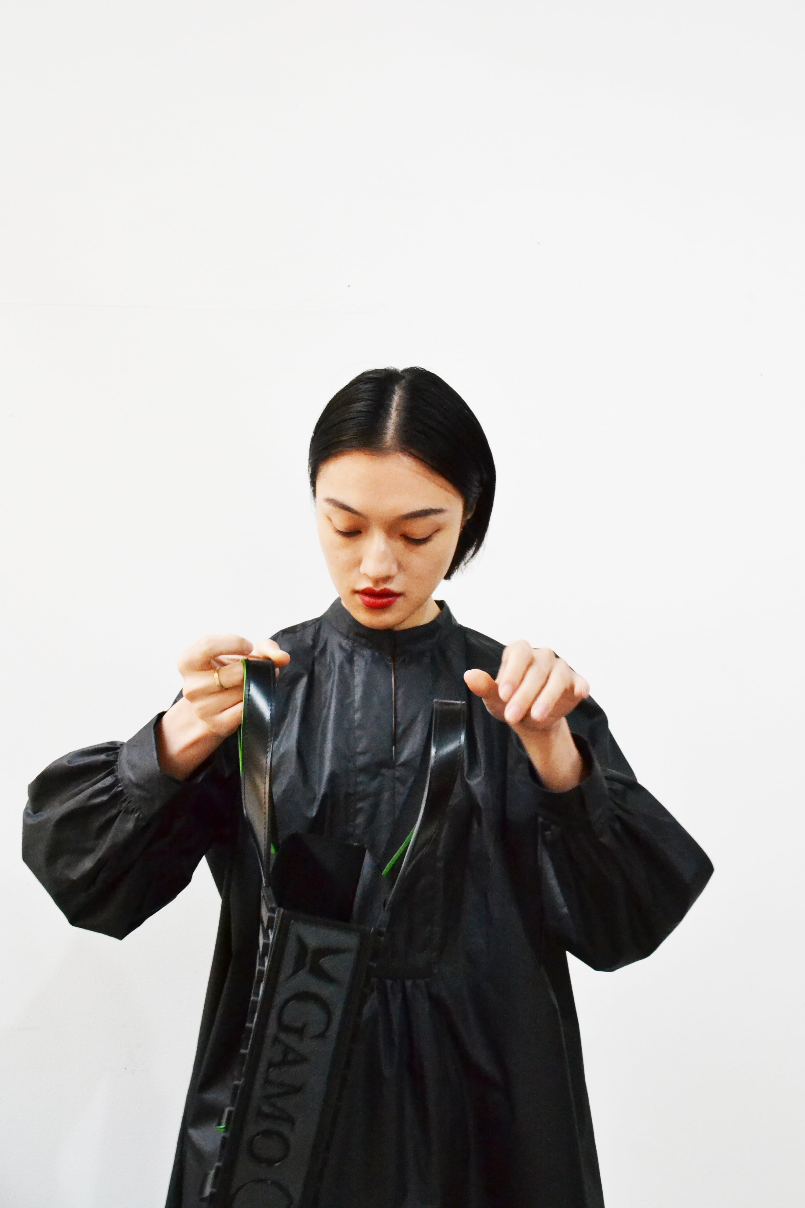 現在は、ハンドバッグとミニショルダーバッグの2型、カラー展開はブラック、クリアーホワイト、蛍光の3色です。